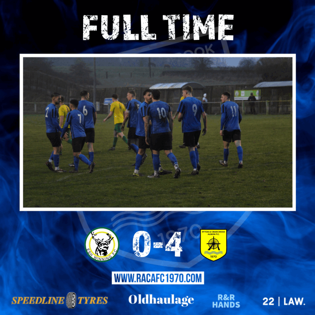 Albion heaped the misery on to Esh Winning with a 4-0 win at West Terrace, the damage being done in the first half with goals from Louis Anderson, Louis Calvert (2) and Callum Johnston. The Stags came close to ending their goal drought on more than one occasion in the game but they remain rooted to the foot of the table while RACA scored four goals for the second time in five days.