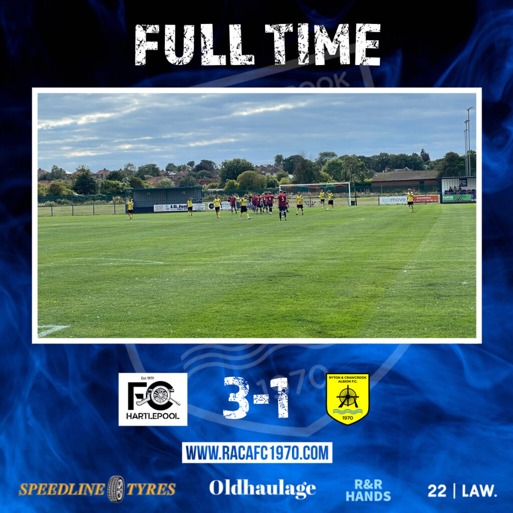 Albion made it three losses from three at FC Hartlepool’s home despite leading in this afternoon’s pipe-opener for 25/26. After a goalless first half, Callum Johnston got his first goal for Ryton on the hour mark, but Pool struck back when new signing Jake Stott levelled on 64 minutes. Fin O’ Gorman put the hosts ahead on 80 minutes & sealed the deal netting a 90th minute penalty.