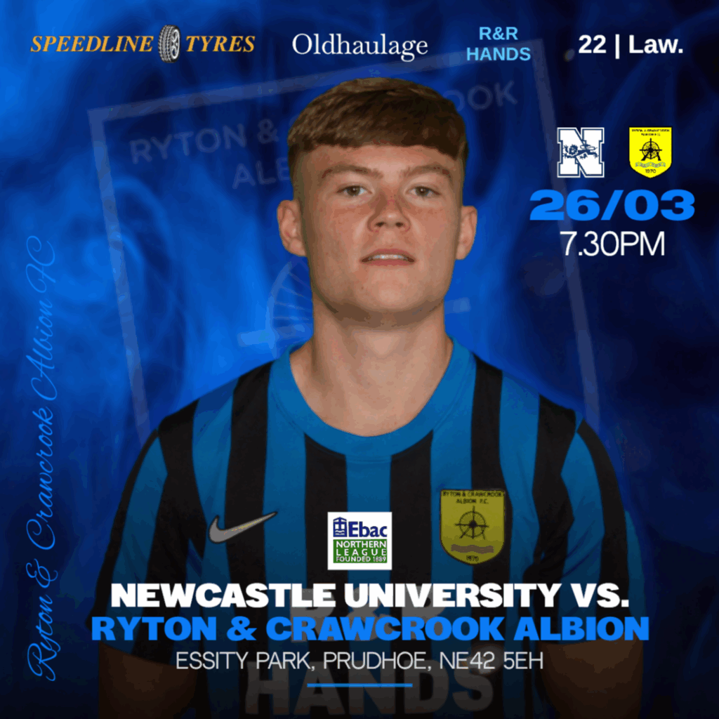 Just two days after our E Armstrong Cup tie, RACA face the University again, this time in the league at Essity Park in the league on Thursday night. While our own play-off hopes have evaporated, Newcastle University still have a slim chance of making the play-offs but that’s dependent firstly on winning all their games in hand, so they’ll be up for revenge after Tuesday night. There’s still local pride at stake for Albion plus the carrot of beating the Students three times this season. Kick off is at 7:30pm, Howay The RACA!!!