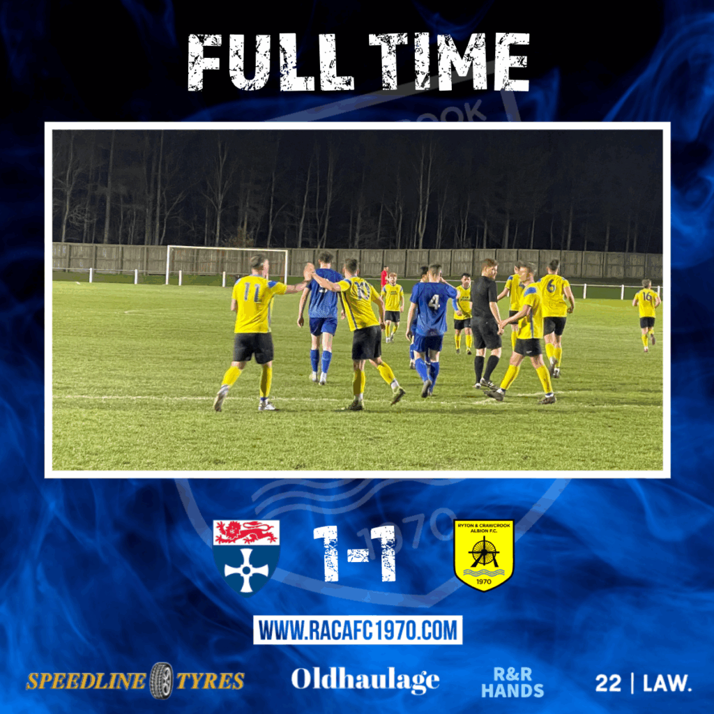 The second half was mainly bereft of goalmouth action as both sides struggled to threaten the opposition keepers despite all the huff and puff & the defences were firmly on top in this game. In the 84th minute a tame shot by University substitute Julian Hayles was fumbled by Corkhill but he recovered the situation despite Joel Manning bearing down on him. The Ryton keeper was more decisive a minute into stoppage time when Uni substitute Jack McClarin’s powerful shot was tipped over the bar for a corner, & in the dying embers of the game Corkhill had to block a driving shot from Jacob Milner to ensure RACA took a point home.